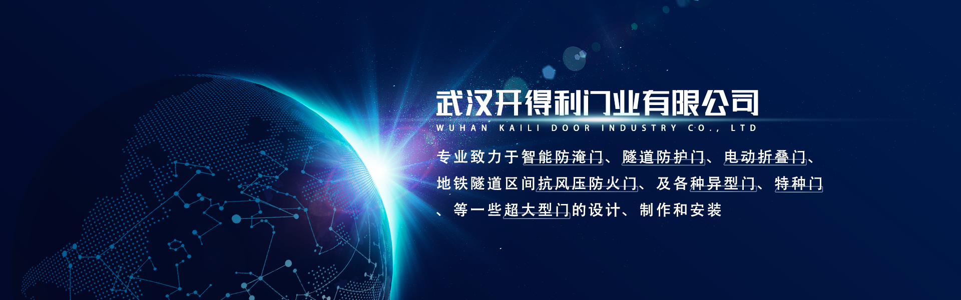武漢開得利門業(yè)有限公司是全國知名的門業(yè)公司。本公司成立于1994年,專業(yè)致力于智能防淹門、隧道防護(hù)門、電動折疊門、地鐵隧道區(qū)間抗風(fēng)壓防火門、各種電動鋼塑窗、工業(yè)電動提升門、及各種異型門、特種門、超大型門的設(shè)計、制作和安裝。